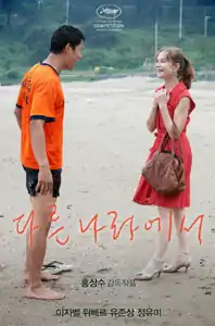 In Another Country (Korean: 다른 나라에서; RR: Dareun Naraeseo) is a 2012 South Korean comedy-drama film written and directed by Hong Sang-soo.[1][2] Set in a seaside town, the film consists of three parts that tell the story of three women, all named Anne and all played by French actress Isabelle Huppert.[3] The film competed for the Palme d'Or at the 2012 Cannes Film Festival.[4][5][6][7][8][9][10] The film was selected as part of the 2013 Hong Kong International Film Festival.[11]