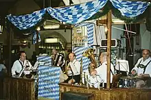 "In München steht ein Hofbräuhaus" (German for "There's a Hofbräuhaus in Munich") is the title of the Hofbräuhaus-Lied ("Hofbräuhaus song") composed in 1935, which is today one of the best known drinking songs throughout the world. The refrain of the schlager song goes: "In München steht ein Hofbräushaus - oans, zwoa, g'suffa", Bavarian dialect German for "There's a Hofbräuhaus in Munich - one, two, let's drink!".