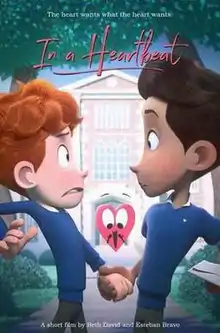 In a Heartbeat is a 2017 computer-animated short film produced by Ringling College of Art and Design. Written and directed by Esteban Bravo and Beth David, the project was funded through Kickstarter, raising $14,191 from 416 backers on a goal of $3,000.[1] The short film concerns a closeted gay boy, Sherwin, who has a crush on another boy named Jonathan and his heart desires to be with him. The short received wide praise on various platforms and was shortlisted for an Academy Award for Best Animated Short Film.