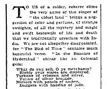 - 1 2 Helen, Bullis (27 April 1913). "Poet of India" (PDF). The New York Times. Retrieved 29 September 2013.
