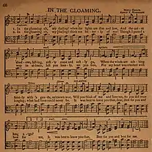 "In the Gloaming" is an 1877 British song composed by Annie Fortescue Harrison with lyrics taken from a poem by Meta Orred. Orred's poem (of the same title as the song) appeared in her 1874 book Poems.[1] "Gloaming" is a regional dialect term of Scots origin denoting "twilight".