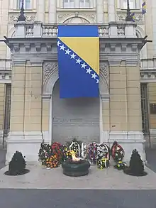 The eternal flame in Sarajevo with the national flag on Independence Day, 2019