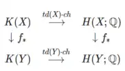 if is a point, then we recover the statement above. Here is the Grothendieck group of complex vector bundles. This commutative diagram is formally very similar to the GRR theorem because the cohomology groups on the right are replaced by the Chow ring of a smooth variety, and the Grothendieck group on the left is given by the Grothendieck group of algebraic vector bundles.