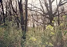 After regular maintenance, efforts in the park have removed non-native species and other underbrush to return the park to its original state, that of an oak savanna.