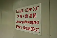 The official languages of Singapore are English, Malay, Chinese (Mandarin) and Tamil.[35] The national language of Singapore is Malay for historical reasons,[35] and it is used in the national anthem, "Majulah Singapura".[36]