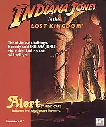 Indiana Jones in the Lost Kingdom is a puzzle video game developed by Michael J. Hanson and published by Mindscape for the Commodore 64.[1] The game is based on the Indiana Jones series,[2] and it was released in North America in late 1984. In the UK, the game was imported and distributed by U.S. Gold.[1][3]