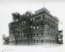 While negotiations were ongoing between IU and the Medical College of Indiana, representatives from the Central College of Physicians and Surgeons approached Purdue University's medical department in West Lafayette, which was established sometime prior to 1895, to arrange a similar union.[3] The Purdue trustees declined the offer, not wanting to interfere with the concurrent negotiations between IU and the MCI.[3] In May 1905 the MCI submitted the same proposal ("...to give its property and assets of an appraised value of $100,000 to the University, and to accompany the gift by its good will and the gratuitous services of its faculty; the motive being to permanently establish a medical college of high order in connection with an educational institution of good standing.") that had failed ratification with IU to Purdue's trustees.[3] The trustees took the proposal into consideration, and were "convinced that the conditions were unusually favorable to the consummation of a union of interests where all previous efforts had failed, and to the inauguration of a progressive educational movement of great value to the State." By September the proposal was accepted subject to the approval of the state legislature, and the MCI became part of Purdue University with the full title of "the Indiana Medical College, the School of Medicine of Purdue University."