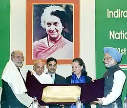 The Indira Gandhi Award for National Integration is a prestigious award accorded by the Indian National Congress, after Indira Gandhi, a former Prime Minister of India. The award is given annually, starting from 1985, to distinguished persons/institutions for promoting national integration and understanding and fellowship amongst religious groups, communities, ethnic groups, cultures, languages and traditions of India and the strengthening, through thought and action of the nation's sense of solidarity. The Awardee is selected by an Advisory Committee of eminent persons representing art, science, culture, education, literature, religion, social work, journalism, law and public life. The Award carries an amount of 5 lakh rupees in cash and a citation. The Award is given on the Martyr's Day. The Award is given for services deserving of recognition in the year to which the Award relates and two years immediately preceding it.[1]