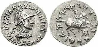 - ↑ The coins of the Greek and Scythic kings of Bactria and India in the British Museum, p. 50 and Pl. XII-7