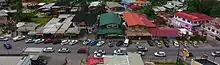 Indo-Trinidadian and Tobagonian foods like doubles,[21] aloo pie,[22] pholourie, saheena, baiganee, bara, and kachori are popular street foods throughout the country and are served with various chutneys, achars, and pepper sauce. Doubles is made with two baras (flat fried dough) and curried channa (chickpeas) and is served with toppings, like pepper sauce, kuchela, and tamarind, mango, pommecythere, cucumber, coconut and bandhaniya chutneys. It is one of the most popular breakfast foods eaten on the islands, however, it is eaten at any time throughout the day. Another Indo-Trinidadian and Tobagonian street food that is popular is roti, which consists of roti (usually paratha or dhalpuri) that wraps curried vegetables, curried channa (chickpeas) and aloo (potatoes), curried chicken, curried shrimp, curried goat, curried duck, curried conchs, or any other spicy fillings. The town of Debe in southern Trinidad is a popular destination for these street foods.[23]