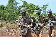 Bakamla personnel equipped with Canik TP9 9mm handgun, DSAR15PC 5.56mm assault rifle, DSSR762 7.62mm marksman rifle and 12.7mm machine gun.[12] Bakamla vessels also have been authorized to use 30 mm caliber autocannon.[13]