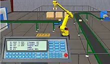Offline programming is where the entire cell, the robot and all the machines or instruments in the workspace are mapped graphically. The robot can then be moved on screen and the process simulated. A robotics simulator is used to create embedded applications for a robot, without depending on the physical operation of the robot arm and end effector. The advantages of robotics simulation is that it saves time in the design of robotics applications. It can also increase the level of safety associated with robotic equipment since various "what if" scenarios can be tried and tested before the system is activated.[8] Robot simulation software provides a platform to teach, test, run, and debug programs that have been written in a variety of programming languages.