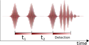 Pulse Sequence used to obtain a two-dimensional Fourier transform infrared spectrum. The time period is usually referred to as the coherence time and the second time period is known as the waiting time. The excitation frequency is obtained by Fourier transforming along the axis.