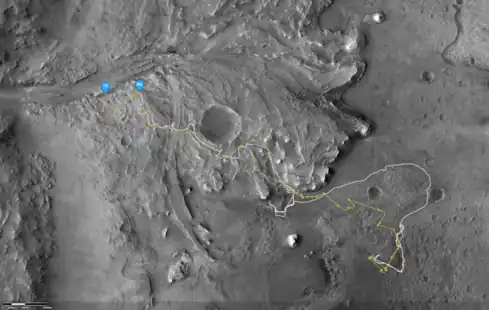- ↑ mars.nasa.gov. "Location Map for Perseverance Rover - NASA". mars.nasa.gov. Retrieved 26 September 2023.