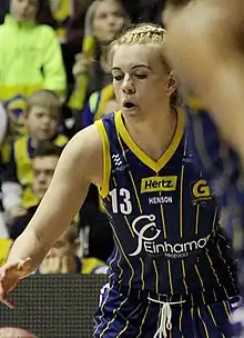 After being part of Grindavík's successful junior programs, where her group won several junior Icelandic championships,[1] she played her first games with the senior team during the 2005-2006 Úrvalsdeild season.[2] She won her first major trophy on 24 February 2008 when Grindavík defeated Haukar, 77-67, in the Icelandic Cup finals.[3][4][5]