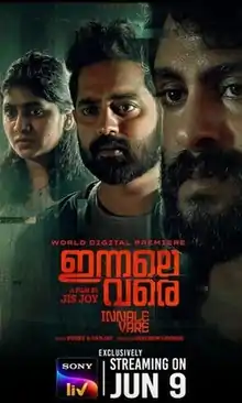 Innale Vare is an Indian Malayalam-language film, which is directed by Jis Joy and produced by Mathew George.[1] The film stars Asif Ali, Nimisha Sajayan and Antony Varghese in lead roles.[2] The film was directly released on SonyLIV OTT platform on 9 June 2022.[3][4]