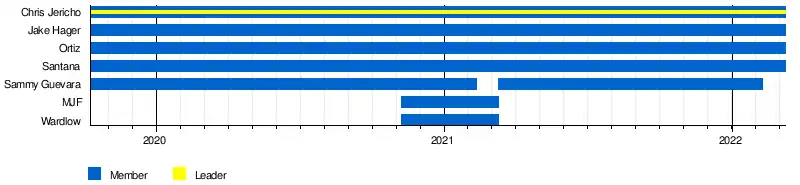 The stable was formed during the first episode of AEW Dynamite and became one of the central acts of the promotion during the first years, since Jericho became the AEW World Champion. The stable first notable feud was against The Elite, being defeated in a Stadium Stampede. The stable also included MJF and Wardlow for a few months before MJF turned on them and created his own stable, The Pinnacle, facing both stables in a Blood and Guts match and a Stadium Stampede. During the final months of the stable, they feuded with American Top Team and Sammy Guevara won the AEW TNT Championship twice. The stable disbanded after Jericho and Hager turned on Santana and Ortiz.