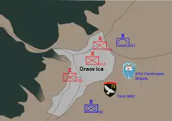 The Battle of Oraovica was a conflict between Army and Police of FR Yugoslavia and Albanian militant group before Serbs entered last sector of Ground Security Zone. Since the village was outside GSZ, Yugoslav forces were allowed to use heavier weapons, such as M-84 tank. On 14 May Yugoslav forces launched an attack on UÇPMB stronghold in this Albanian-populated place near the border with Kosovo.