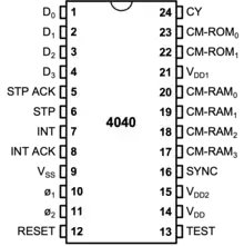 The Intel 4040 microprocessor was the successor to the Intel 4004, introduced in 1974. The 4040 employed a 10 μm silicon gate enhancement-load PMOS technology, was made up of 3,000 transistors[2] and could execute approximately 62,000 instructions per second.