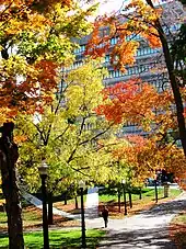 Queen's Sustainability Office, created in 2008, is charged with the university's green initiatives and creating awareness about environmental issues.[76] The office is headed by a sustainability manager, who works with the university, external community groups, and the government. In 2009, with the signing of the Ontario Universities Committed to a Greener World agreement, Queen's pledged to transform its campus into a model of environmental responsibility.[77] Queen's was the second Ontario university to sign the University and College Presidents' Climate Change Statement of Action for Canada, in 2010.[78][79]