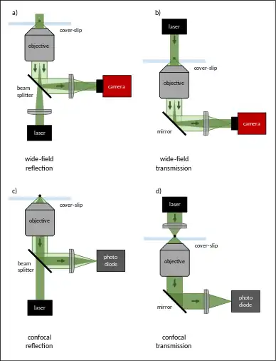 {{cite book}}: CS1 maint: location missing publisher (link) CS1 maint: others (link) - ↑ Young, Gavin; Kukura, Philipp (2019-06-14). "Interferometric Scattering Microscopy". Annual Review of Physical Chemistry. 70 (1): 301–322. Bibcode:2019ARPC...70..301Y. doi:10.1146/annurev-physchem-050317-021247. ISSN 0066-426X. PMID 30978297. S2CID 195661687.