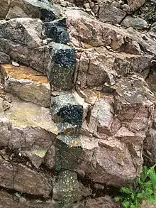 Intrusive dike with chilled margins, near Terrace Bay, Ontario, Canada.