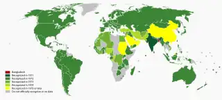 Most UN member nations were quick to recognise Bangladesh within months of its independence.[12]