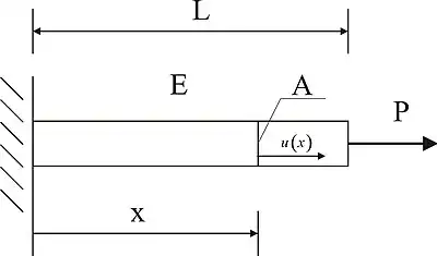 In the tension-compression problem, the following equation shows the relationship between displacement u and force P: