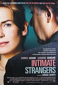 Intimate Strangers (French: Confidences trop intimes) is a 2004 French film directed by Patrice Leconte. The moody, stylish noir tells the story of a troubled young woman who in error starts telling her problems not to a psychiatrist but to a lonely tax consultant in the office next door.