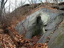 Inwood Hill Park is a public park in the Inwood neighborhood of Manhattan, New York City, operated by the New York City Department of Parks and Recreation.[1] On a high schist ridge that rises 200 feet (61 m) above the Hudson River from Dyckman Street to the northern tip of the island, Inwood Hill Park's densely folded, glacially scoured topography contains the largest remaining old-growth forest on Manhattan Island, known as the Shorakapok Preserve after a historic Wecquaesgeek village. Unlike other Manhattan parks, Inwood Hill Park is largely natural and consists of mostly wooded, non-landscaped hills.