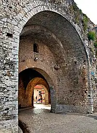 The exact time of Ioannina's foundation is unknown, but it is commonly identified with an unnamed new, "well-fortified" city, recorded by the historian Procopius as having been built by the Byzantine emperor Justinian I for the inhabitants of ancient Euroia.[12][13] This view is not supported, however, by any concrete archaeological evidence.[14] Early 21st-century excavations have brought to light fortifications dating to the Hellenistic period, the course of which was largely followed by later reconstruction of the fortress in the Byzantine and Ottoman periods. The identification of the site with one of the ancient cities of Epirus has not yet been possible.[14][15]