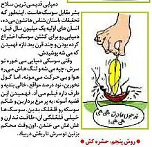 The cartoon describes nine methods of dealing with cockroaches by depicting a Persian-speaking child and a cockroach. During the first method, when the cockroach does not understand him, the child decides to talk to the cockroach in "cockroach language", but the cockroach does not even understand its "own" language and replies by saying "Namana?" ("What?" in Azerbaijani language) the cartoon has been interpreted by people as an insult to Iranian Azerbaijanis.