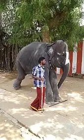 The temple maintains an elephant, which is housed in the hall close to the temple flagstaff.[7]
