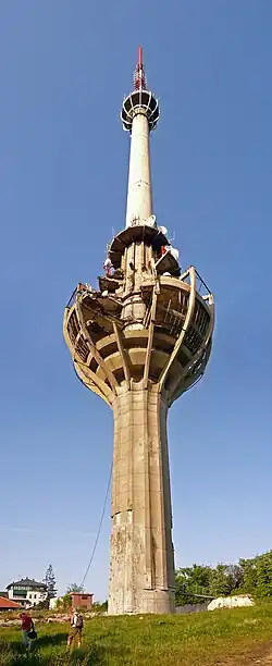 The tower was built in 1975 and its lower basket was partly destroyed in 1999 NATO bombing of Yugoslavia. The damage was estimated at 11.5 million dollars.[1]