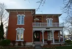 The Isaac and Agnes (Bells) Reeves House is a historic building located in Salem, Iowa, United States. The Reeves had this house built in 1883, and they continued to live here until they relocated to Keokuk in 1891 where Isaac opened a drugstore. The two story, L-shaped, brick structure is a noteworthy example of Italianate architecture.[2] It was owned by numerous people after the Reeves, including William C. Savage who used it as a rental property. One of his tenants was Dr. O.E. Holmes who used it as his residence and to house his medical practice. The front porch was restored in 1989. The house was listed on the National Register of Historic Places in 2010.[1]