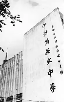 Islamic Kasim Tuet Memorial College (IKTMC) is a secondary school in Chai Wan, Hong Kong. It is named after Kasim Tuet, a Hui Muslim who played a major role in the development of Chinese Muslim education in the city. Formerly known as the Islamic College, Islamic Kasim Tuet Memorial College is the only Islamic secondary school aided by the Hong Kong Education Bureau (EDB).[1] Islamic Kasim Tuet Memorial College has a site area of 6,900 sq m. The 7-storey building is endowed with spacious playgrounds and open areas. There are 26 classrooms, over 20 special rooms (including library, counselling room, career and guidance room, etc.), a hall, 2 basketball courts, 1 cricket court, and 2 covered playgrounds.[2] IKTMC's student composition includes students from Malaysia, India, Nepal, Bangladesh, Pakistan, Philippines, Iran, Indonesia, Saudi Arabia, China, and Yemen.[3]