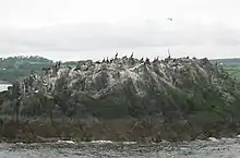 Craigleith lies close to North Berwick's harbour and historically was used as a rabbit warren. The rabbits were bred for food but they were wiped out by myxomatosis in the 1950s. The Atlantic puffin colony on Craigleith, once one of the largest in Britain with 28,000 pairs, became endangered from 1999 onward, due to invasion of non-endemic tree mallow, which choked the puffins' burrows, preventing them from rearing their pufflings. A five-year project, SOS Puffin, led by the Scottish Seabird Centre at North Berwick, was launched early in 2007. Since then, hundreds of volunteers have been working hard to rid the island of the problem, ferried out by boat from the Seabird Centre during the winter months, when the puffins are at sea. There are signs that the puffins are starting to return to the island to breed.[20] Fidra, Inchmickery and Eyebroughy are RSPB reserves, the last being noted for its cormorants.[4][12][21] Over 240 species of bird and 60 varieties of seaweed have been recorded on the Isle of May.[2]