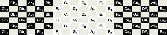 Fig. 1: The Wicki isomorphic keyboard note-layout, invented by Kaspar Wicki in 1896.