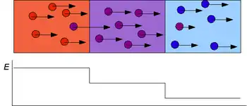 ITP is a displacement method: focusing ions of a certain kind displace other ions. If present in sufficient amounts, focusing analyte ions can displace all electrolyte co-ions, reaching a plateau concentration. Multiple analytes with sufficiently different ionic mobilities will form multiple plateau zones. Indeed, plateau mode ITP separations are readily recognized by stairlike profiles, each plateau of the stair representing an electrolyte or analyte zone having (from LE to TE) increasing electric fields and decreasing conductivities. In peak mode ITP, analytes amounts are insufficient to reach plateau concentrations, such analytes will focus in sharp Gaussian-like peaks. In peak mode ITP, analyte peaks will strongly overlap, unless so-called spacer compounds are added with intermediate ionic mobilities between those of the analytes; such spacer compounds are able to segregate adjacent analyte zones.[1]
