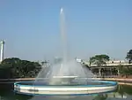 In the southwestern corner of the garden surrounding the mosque, there is a large pool and a grand fountain that spouts water 45 m high. The fountain only operates on Fridays during congregational salat and during Islamic holidays such as Eid ul-Fitr and Eid ul-Adha. The river Ciliwung flows across the mosque complex along the eastern side of the mosque.[33]