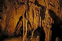 The cave is still being explored, but only a part can be visited. Its deepest known area is named Hell. The most beautiful dripstone structures are the Mammut's Mouth, Fairyland, Column Hall and Concert Hall. Due to water filling the cave in 1958 and 1974, the inner caverns are presumably connected with water drains.