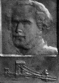 The undated medal represents the portrait of Count István Széchenyi [1] and is a reference to Ferenc Herczeg's drama "The Bridge" (1925)