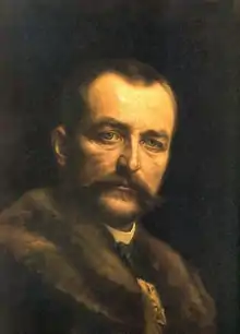 Count István Imre Lajos Pál Tisza de Borosjenő et Szeged[lower-alpha 1] (22 April 1861 – 31 October 1918) was a politician who served as prime minister of Hungary from 1903 to 1905 and from 1913 until 1917. He was also a political scientist, international lawyer, macroeconomist, member of the Hungarian Academy of Sciences and champion duelist. The outbreak of World War One defined his second term as prime minister. He was killed by leftist revolutionaries on 31 October 1918 during the Aster Revolution, the day Hungary declared its independence, dissolving the Dual Monarchy or Austro-Hungarian Empire.[1] Tisza was the most zealous adherent of the Dual Monarchy (the partnership with Austria) among the Hungarian political leaders[2] and pleaded for consensus between liberals and conservatives.[3]