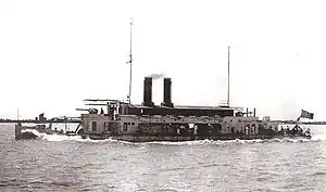 In 1910, at the request of the Italian foreign ministry (in turn contacted by the Italian ambassador in Beijing), the Regia Marina decided to build two river gunboats to be stationed in China, to protect the Italian communities along the Chinese rivers and in particular the upper Yangtze and the Hai,[4] where Italian traders and entrepreneurs had built textile factories and managed commercial activities.[5] Larger ships, in fact, could not go beyond Wusong (at the mouth of the Yangtze) and Hankou (and moreover, for economic reasons, the Regia Marina could not afford to maintain warships on station in the Far East: for years the protection of the Italian communities was entrusted to the French[6]).[4] Between March 1911 and November 1913 the gunboat Sebastiano Caboto was built in Italy, of a 1,000-ton displacement, which reached Shanghai in April 1914 after a four month trip.[5]