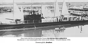 After Italy signed Armistice of Cassibile surrendering to Allies the submarine was undergoing maintenance in Genoa. Aradam was also being converted to an SLC boat. Since she could not leave, her crew scuttled her to avoid capture.[3]