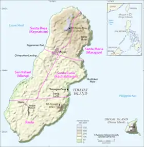 - Mount Karaboboan (Mount Santa Rosa): The other extinct volcano of Itbayat Island is in the island's northern half.[28] Near the 800-foot (240 m) mountain is a settlement of the early settlers of Itbayat near Barangay Santa Rosa.