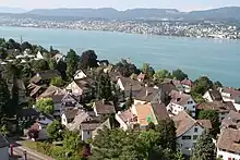 In his pamphlet "An attack on the Orthodox church" (December 1937) he accused Nietzsche of fuelling Bolshevism,[72] and Stalinism.[81] The Gestapo confiscated this work and banned him from the Reichskulturkammer and independent political activity.[82] In May, Ilyin decided it was the time to leave but the Berlin police forbade his departure.[83] "On June 17, 1938, [he declared] I am ready to testify under oath that I and my wife are the purest Aryans and that I have never belonged to Masonic or affiliated organizations anywhere."[72][lower-alpha 4] In early July, he was permitted to visit Karlovy Vary for a treatment of his migraine. Instead he went to Münich with all his manuscripts. In August he asked the Swiss authorities to allow him to settle as a scientist, as a philosopher, and to promote his theory on art. (With a Nansen passport he visited a congress in Locarno.[84][85]) With financial help from Sergei Rachmaninoff, he was able to pay the bail, but he was not allowed to work or to interfere in any way with Swiss politics.[72] On 17 September he wrote to Ivan Shmelev that his furniture and library arrived.[86]