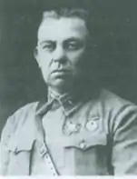He rose to command a squadron of the 40th Cavalry Regiment of the division in September 1920 and a month later became commander of the barrier detachment of the division. With the division, he fought in battles on the Astrakhan steppe and at Tsaritsyn, in the invasions of Azerbaijan and Georgia, the elimination of Ulagay's Landing, and the fighting against the Army of Wrangel at Yuzovka, Melitopol, and Dzhankoy. From January 1921 he returned to squadron command in fighting against the Revolutionary Insurrectionary Army of Ukraine in south Ukraine and the Ukrainian People's Army troops of Yuriy Tyutyunnyk near Kiev.[1]