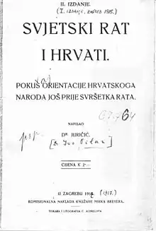 Ivo Pilar[1] (19 June 1874 – 3 September 1933) was a Croatian historian, politician, publicist and lawyer,[2] considered the father of Croatian geopolitics. His book The South Slav Question is a seminal work on the South Slav geopolitical issues.