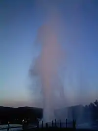 Ixtlán de los Hervores is known for its thermal water springs.[1] In Ixtlán de los Hervores one will find three geysers that surges up from the depths of the earth with tremendous pressure. The jet rises more than 30 metres (98 ft) in height and reaches temperatures of 96 °C (205 °F). There are two new geysers, one near the soccer field. A rustic spa has been built near the geyser with services for people who are seeking the healing powers of sulphurous waters found here.